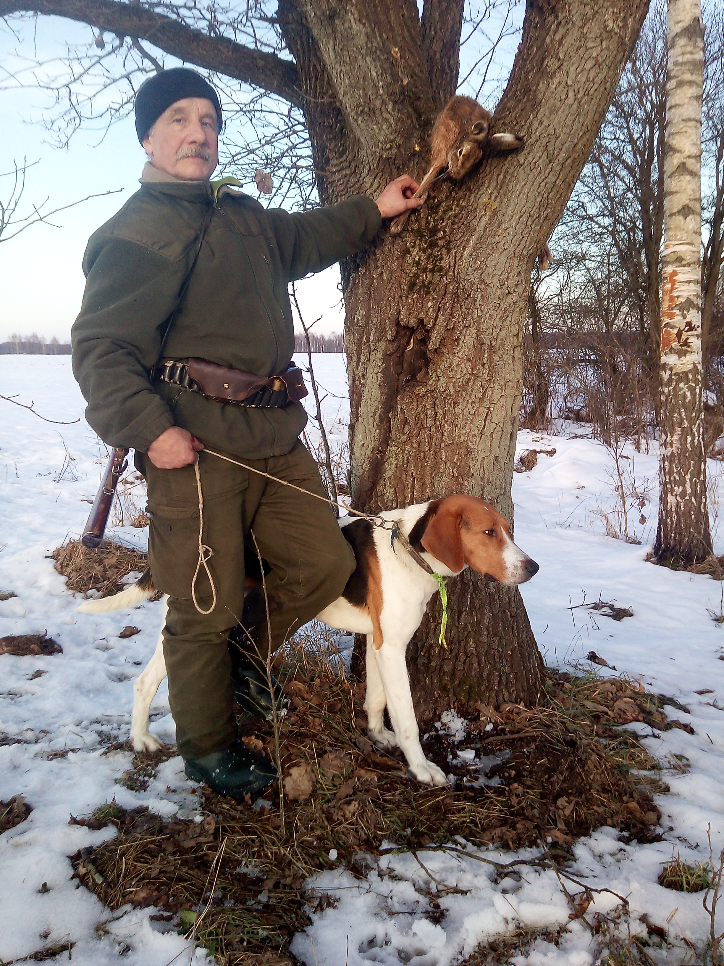 В четверг тоже повезло: старый поднял русака, малая подвалила, вполне прилично смычком поработали часа полтора, вышел на брата на дорожку...  сфоткали, облупили, накормили малую чем Бог послал... старый даже на свежину не подошел, колупался долго... вернулся почти на место подъема, пока мы к машине подошли, малую посадили, ПОДНЯЛ ВТОРОГО, там же... около 18.00 в темноте еле сняли.