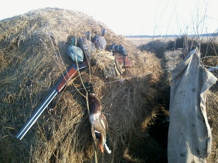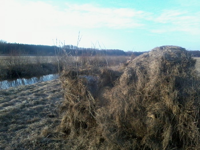 В субботу соорудил скрадок. Благодаря работникам АПК половина скрадка уже была готова)) осталось немного доделать. Вчера утром без добычи, хотя стайка сидела метров 500 от скрадка, никакой "кавалер" не клюнул. Видно все были с "дамами". Работал духовым манком.
